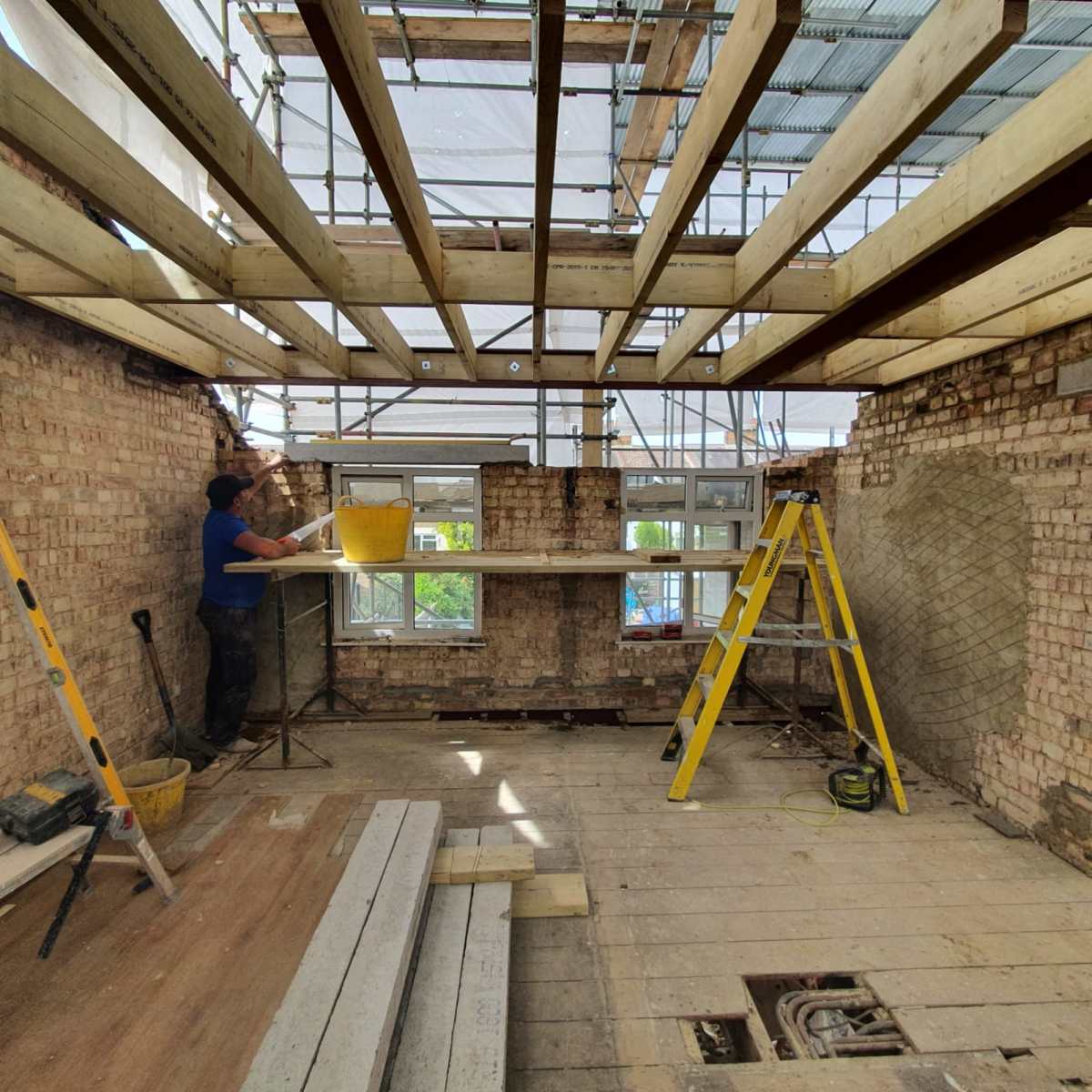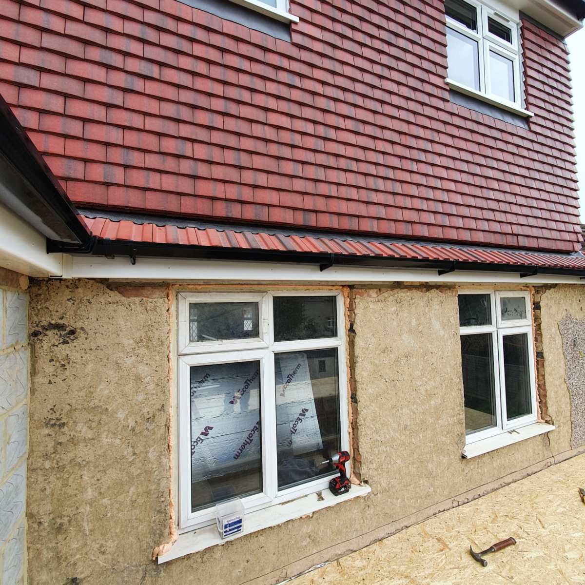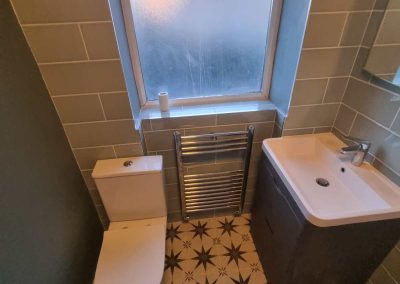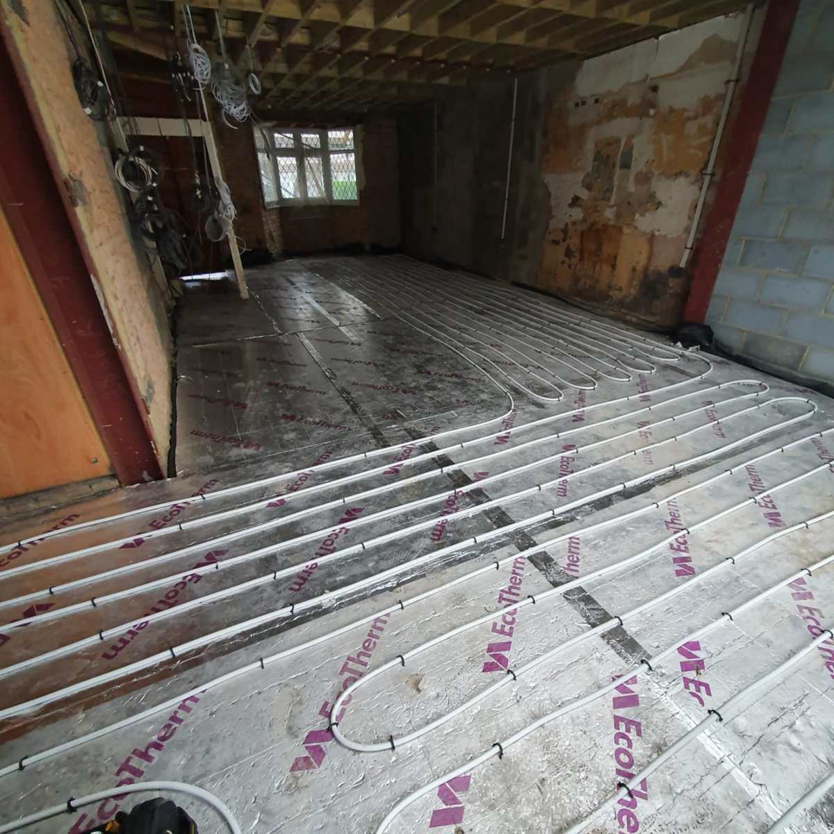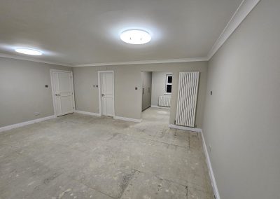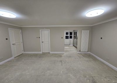 – A full house renovation including plumbing and heating installation, underfloor heating in the kitchen, complete electrical installation. This house will also be getting a new roof, guttering, facias, plastering and painting and decorating.
