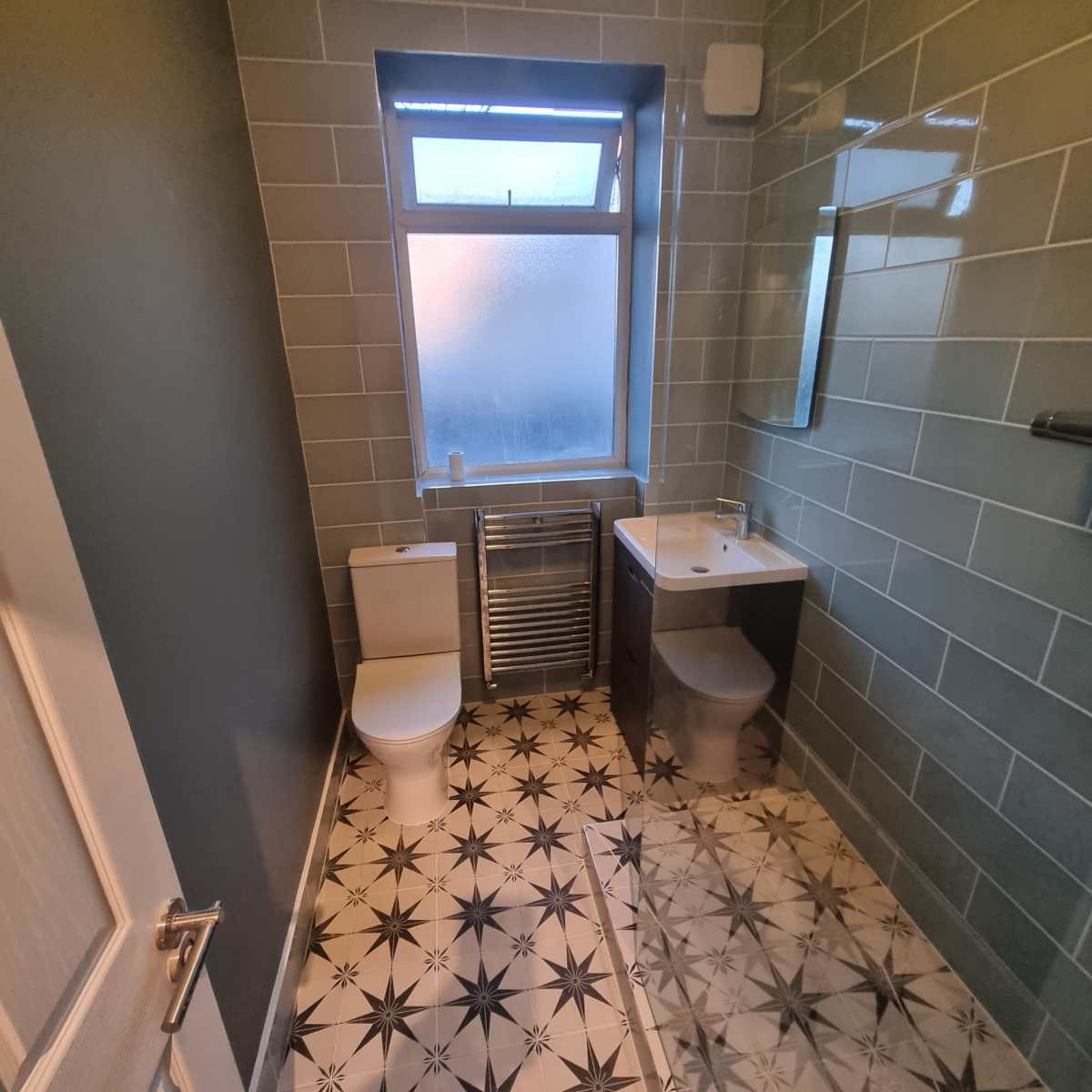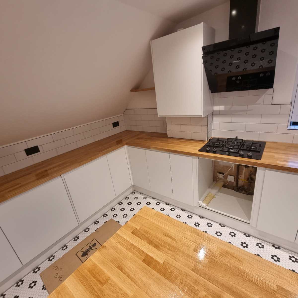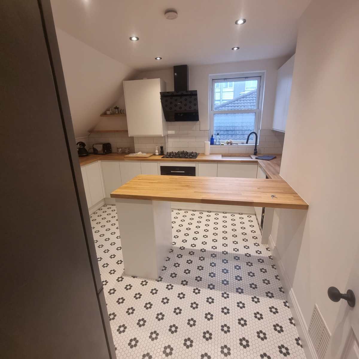 – A full house renovation including plumbing and heating installation, underfloor heating in the kitchen, complete electrical installation. This house will also be getting a new roof, guttering, facias, plastering and painting and decorating.
